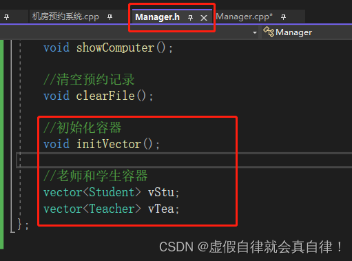 void initVector() 初始化容器,并在Manager.cpp中具体实现Manager.h中-添加位置如图: